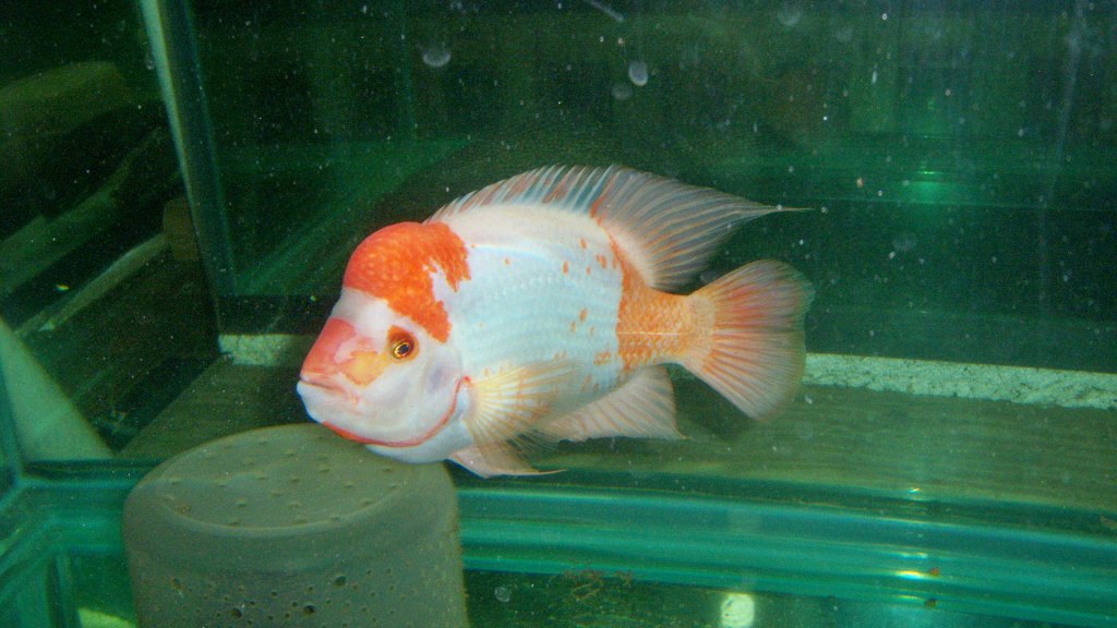 - Flowerhorn hybrid cichlid: https://www.monsterfishkeepers.com/forums/threads/14-flowerhorn-cichlid-in-4500-gal.683458/
