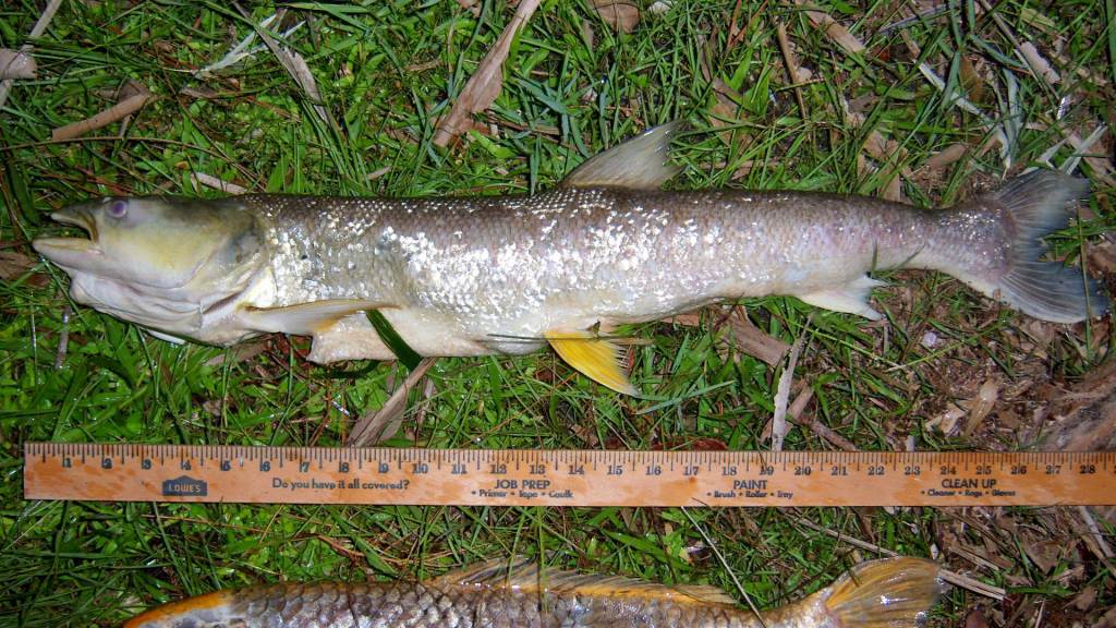 - Bowfin, Amia calva: https://www.monsterfishkeepers.com/forums/threads/dont-let-your-bowfin-gorge-on-borderline-rotten-fish.675898/